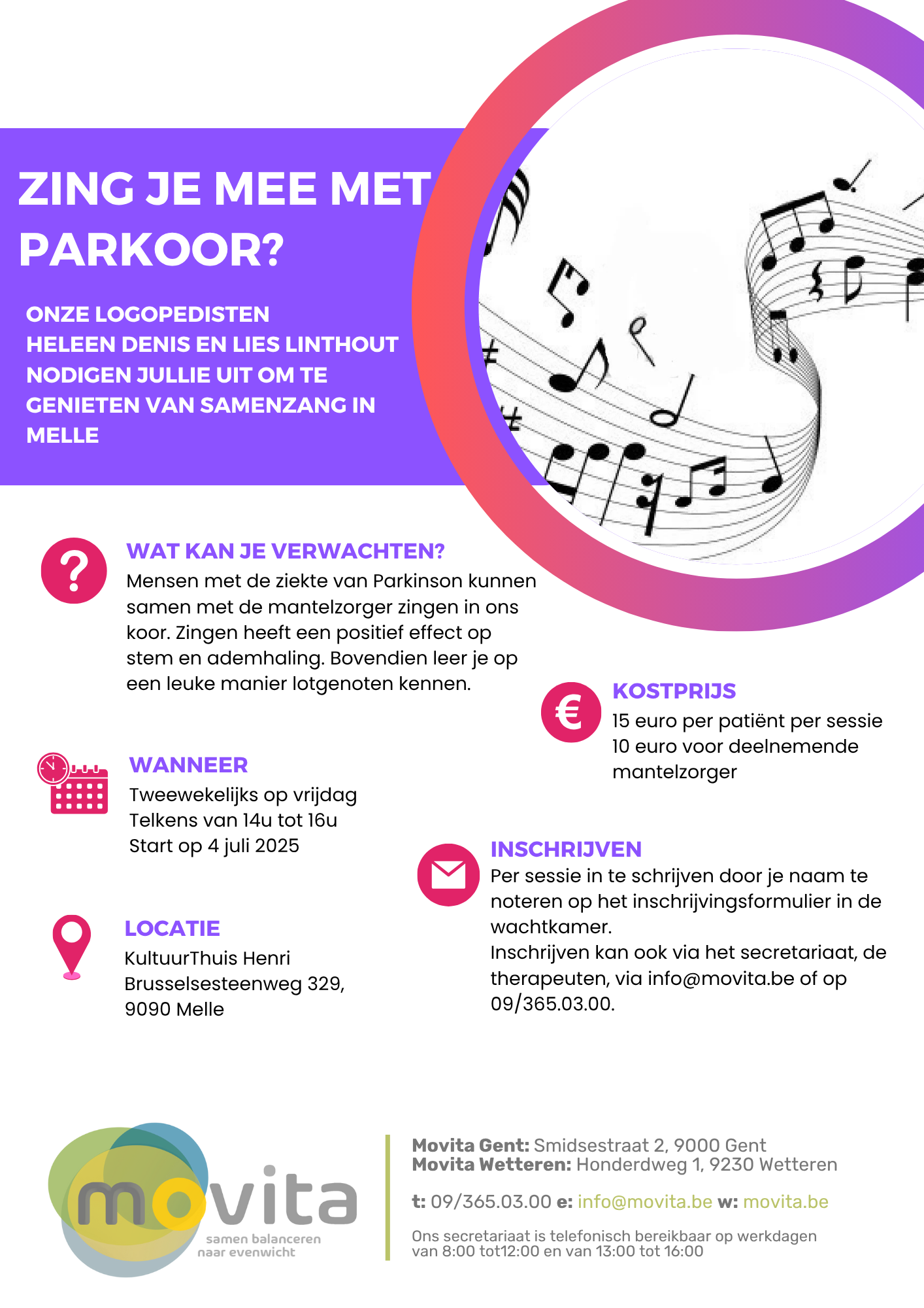 Onze logopedisten Lies en Heleen starten een gezellig koor voor mensen met de ziekte van Parkinson én hun mantelzorgers. Kom samen zingen op de vrijdagen en beleef […]